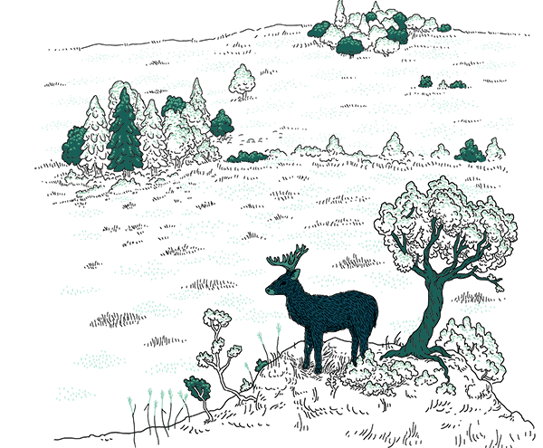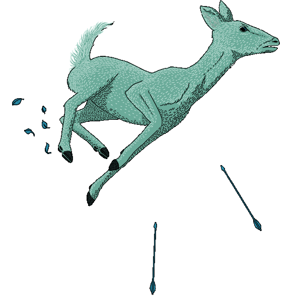Puis… Une branche craqua. Cette biche, mon prix, ma proie, la créature qui m’avait mené jusqu’à là me regardait droit dans les yeux. Mon orgueil n’y vit que du défi. Je me ruais alors sur mon arc : qu’importe Kerva, je repartais à ma traque. Cette dernière fut de courte durée : l’animal, acculé, se retrouva piégé au pied d’une falaise dont je lui interdisais toute retraite.