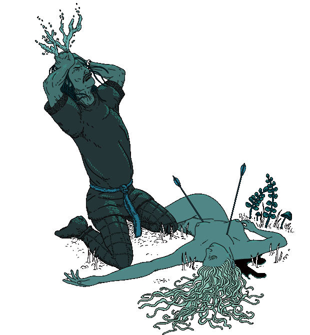 Mon nom est Oxsos et je suis devenu la proie. Un cerf noir que quelques solitaires traquent sans relâche. Je n’ai pour seule compagnie, que quelques arbres et quelques roches, et j’ai hérité de la malédiction de la belle Kerva. Qu’avait elle bien pu faire pour mériter cela ? Nul ne le sait. Les lois du dieu cornu, qui règne sur les profondeurs et les forêts n’ont pas à être jugées par les mortels, et mon avidité m’aura conduit jusqu’à sa sentence.
